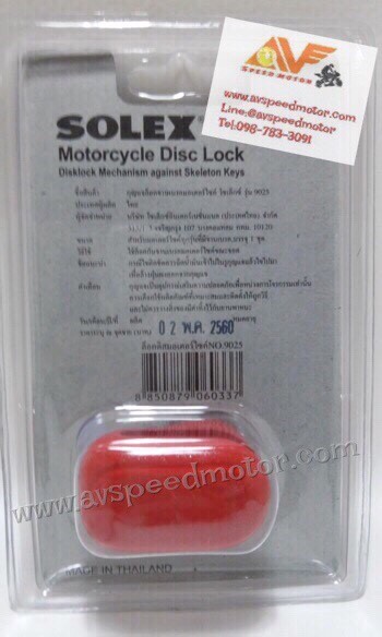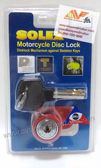 ตัวล็อคจานดิส สำหรับ มอเตอร์ไซค์ทุกรุ่นที่มีจานดิสเบรค เป็นอุปกรณ์เสริมเพิ่มความปลอดภัยในการป้องกันการโจรกรรมรถ สินค้าคุณภาพจาก SOLEX